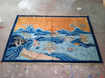 tappeto cinese nuvola azzurra pregiato paesaggistico anni 70 come da foto allegate cm 250x170.