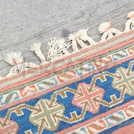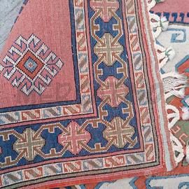 TAPPETO COLOR SALMONE CORNICE BLU DISEGNI VERDI. 105 X 145 CM. PRESENTA PICCOLI SEGNI DEL TEMPO. BUONE CONDIZIONI GENERALI MERCATINO USATO ROMA GARBATELLA