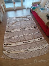 Tappeto/ coperta fatta a mano comprata in Marocco di lana color bianca e marrone con disegni tipici