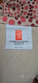 Tappeto da cucina con un allegro motivo a pois concentrici come a formare un disegno geometrico che richiama nel contempo dei fiori.