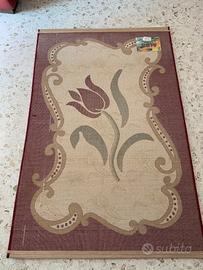 Bellissimo tappeto nei toni del bordeaux e beige con motivo floreale + foglie verdi. Usato per bellezza solo quando è venuto qualche ospite. La misura è 100 x 150