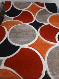 Forma: rettangolare Dimensioni: 220 cm x 150cm Stampa: geometrica/cerchi Colore: bianco, grigio, arancione, rosso, nero Completamente igienizzato con lavamoquette industriale