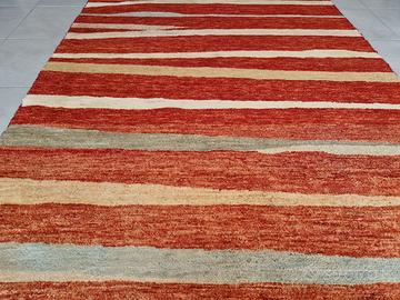 Vendo splendido tappeto "Gabbeh" pakistano, annodato a mano, misura 181x128 cm, vello in lana, nuovo e mai calpestato. Disegno moderno, colore prevalente rosso.