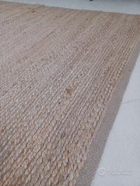 Bellissimo tappeto con particolare tessitura effetto corda. I nodi che si vedono ìn rilievo non sono un difetto ma particolari dell'intreccio. Comprato da JYSK e usato per poco tempo. Adattabile a parecchie tipologie di arredamento. Misure cm 230 x 170 circa