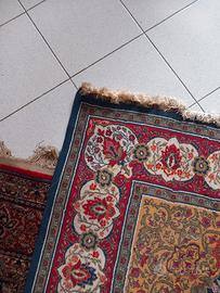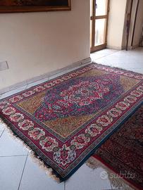 bellissimo tappeto Egiziano KERMAN CM 2.350X CM 1.500in pura lana con base in cotone comprato anni 80 e usato pochissimo per continui spostamenti,colori ROSSO,BLU,ROSA ,BIANCO ,OCRA,NOCCIOLA,VERDE SCURO.