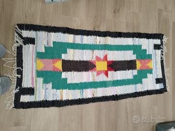 Tappeto fatto a mano a telaio in filo di cotone 100% per l'ordito e delle strisce di maglina di cotone per la trama dim. 1,75 x 65