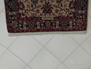 Tappeto annodato a mano non ricordo se persiano oppure pakistano comunque comprato in un negozio di tappeti orientali. Misura cm 165 x cm 90. In ottime condizioni con perimetro non sciupato e frange in ottimo stato. Vendo causa trasloco.