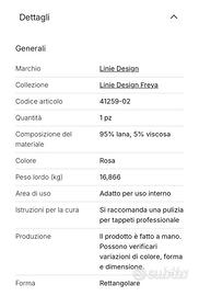 Tappeto Freya 170x240 cm è un tappeto fatto a mano dalla danese Linie Design. Ha un motivo tranquillo che è facile da abbinare ad altri tessuti e colori. Usato pochissimo.