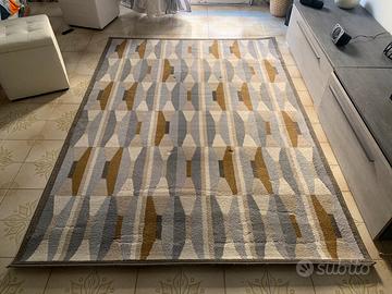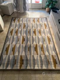 Tappeto Vidstrup Ikea. Dimensioni 170x240, colore beige, grigio e marrone con disegni geometrici. Pelo 100% polipropilene, rivestimento del dorso in lattice sintetico. Condizioni ottime