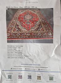 tappeto Heriz con certificato di autenticità lana e cotone misure 285 per 185