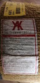L'etichetta mostra informazioni sul marchio di tappeti YAK, parte della linea HIMALAYAN line di varnsandknots.