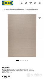 Tappeto IKEA modello MORUM, tessitura piatta per interno/esterno. Colore beige. Misure 200x300 cm. Pagato €79,95.