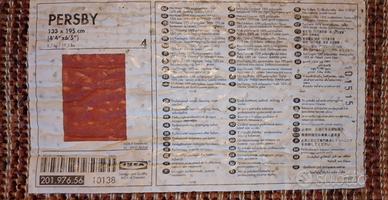Tappeto IKEA Persby dalle tonalità calde rosso e arancio, ideale per soggiorno, camera o studio. Realizzato in 100% polipropilene, resistente e facile da mantenere pulito. Misure 190 x 135 cm. Morbido al tatto e con colori vivaci che donano calore all’ambiente. Ritiro in zona da parte dell'acquirente.