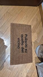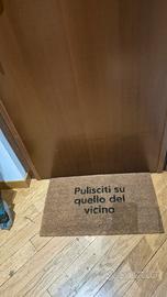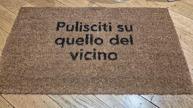 Bellissimo Zerbino da interno in fibra di cocco con scritta "Pulisciti su quello del vicino". Simpaticissimo e veramente d'effetto!!! Dimensioni: 40x60cm. Acquistalo e sarai protagonista della nuova riunione di condominio. Praticamente nuovo!!! Svendo a solo 25,00 euro , no proposte più basse perché il suo prezzo reale è 40,00 euro