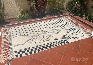 È un tappeto di alta qualità e morbido, davvero unico nel suo genere. Ogni pezzo è tessuto a mano e progettato da donne delle nostre tribù berbere, utilizzando le lane naturali più fini, tinture indigene e detergenti biologici.Fatto a mano con lana naturale di pecora, tappeto su ordinazione.