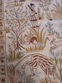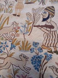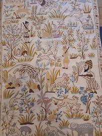 Fili di lana ricamati a mano con punto catenella su fondo di tela di cotone e juta. Lana 70% Cotone 30% 91cmx148 cm davvero bellissimo