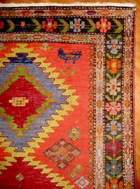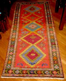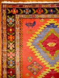 Karabagh (270 cm x 120 cm). È stato tessuto negli anni '60 molto probabilmente nel distretto di Jabrail o nel distretto di Fuzuli. Entrambi sono situati lungo il fiume Araz, nel sud di Karabagh.Coloranti vegetali - Lana su Cotone. Il tappeto è stato pulito professionalmente.