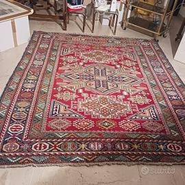 Tappeto di formato quadrato disegni geometrici brillanti ricchissimo di figure stilizzate di lana .morbida e leggera Afganistan usato pochissimo AFFARE NON SPEDISCO
