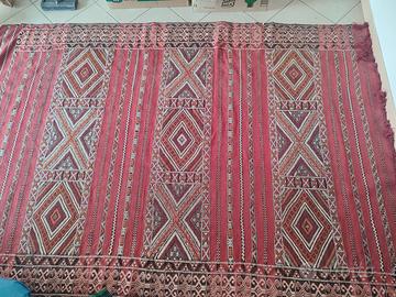 splendido tappeto Kilim autentico del Marocco, realizzato interamente a mano da artigiane berbere del Medio Atlante.