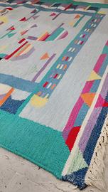 Kilim originale, modello a pelo corto con frange bianche.