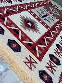 Vendo tappeto kilim nuovo e 100% cotone. Le misure sono 60cm per 90cm. Per ulteriori informazioni contattatemi!!