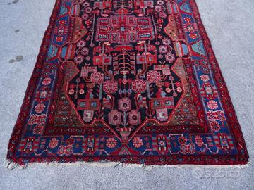 TAPPETO LANA ROSSO E BLU VINTAGE DISEGNI GEOMETRIC
