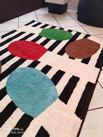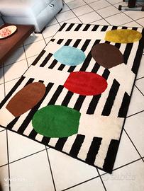Un tappeto eccentrico inizialmente progettato da Ikea per le stanze dei bambini, per il suo design è stato chiamato 'Lucifer' Tappeto vintage IKEA Pop Art raffiguranti fiammiferi colorati su fondo in bianco e nero a contrasto, realizzato in lana intrecciata. Il tappeto sta bene anche nella propria zona giorno, sala da pranzo o persino camera da letto, così come in uno showroom o in un ristorante. Questo tappeto commercializzato da Ikea dal 1999 è un oggetto in buone condizioni vintage. Niente macchie o strappi, niente odori. Alcuni segni luminosi di usura da uso precedente visibili, per lo più intorno ai bordi. Nel complesso in buona forma per la sua età. Il tappeto è stato pulito professionalmente e preventivamente trattato con sostanze chimiche delicate e naturali contro potenziali danni da insetti o funghi. Si prega di notare che dopo aver srotolato il tappeto sarà necessario arrotolarlo rivolto verso l'altro lato per aiutare la forma a rilassarsi. In ottime condizioni, Un pezzo davvero bello. Lunghezza 197 cm x Larghezza 134 cm.