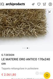 Bellissimo TAPPETO color ORO ANTICO misure 170x240 cm NUOVO acquistato per errore Marca: G.T.Design Serie: LE MATERIE ORO ANTICO super scontato 290 euro