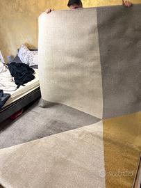 Vendo per trasloco tappeto moderno di grandi dimensioni, con design geometrico nei toni beige, grigio e oro. In ottime condizioni, pulito e ben tenuto. Ideale per salotto, camera o ingresso.