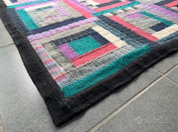Tappeto / Arazzo disegnato da Arazzi Missoni in collaborazione con Saporiti Italia originale Come un tappeto patchwork, questo pezzo è una combinazione di artigianato tradizionale e design moderno. Pezzi di lana Missoni lavorati a maglia a righe sono stati uniti a quadrati e cuciti a mano su un tessuto per creare un opera d’arte unica. Misure: 230 x 200 cm Opera che è stata realizzata negli anni ‘80 È in condizioni eccellenti per l’epoca che ha.