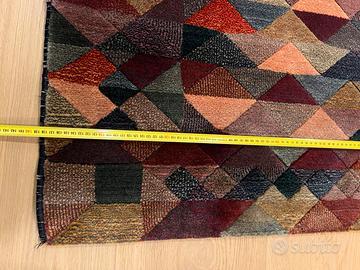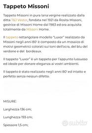 Splendido tappeto geometrico in lana di Ottavio Missoni chiamato Luxor, prodotto in Italia negli anni '80. E’ stato appena ritirato dalla pulitura ed e’ in condizioni eccellenti