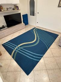 Tappeto moderno di grandi dimensioni (283x197) colore blu con motivo grafico.