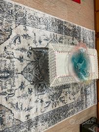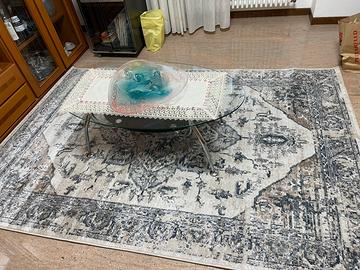 Tappeto salotto moderno a forme geometriche grigio chiaro,che cambia colore in base alla luce e da dove lo si guarda,dona al salone,un tocco di eleganza,a pelo corto che non porta polvere come altri tappeti.nessun difetto e macchia,solo steso a terra x prova,e poi tolto e rimballato.misura 230x160ritiro a mano presso il mio domicilio ore serali o sabato/domenica no spedizione.no tratto,prezzo già inferiore.