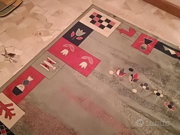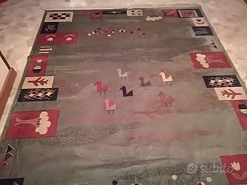 Tappeto a pelo corto, sfondo verde salvia e disegni stilizzati. Mai utilizzato. Misure 170 x 225 .Arreda qualsiasi ambiente