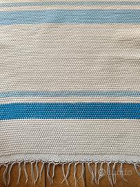 tappeto moderno originale di lana fatto su misura di cm70x180 colore fondo panna righe celesti