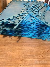 24 pezzi di dimensione 60x60 cm ed altezza 1cm compresi di angolari perimetrali (vedi foto). Usati un anno come base di una piscina gonfiabile.