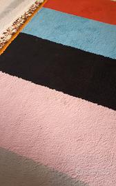 tappeto multicolor arcobaleno 198x133 utilizzato ma tenuto bene. spazzolato giornalmente con robot aspirapolvere e spazzolato mensilmente con battitappeto Folletto Vorwerk. Qualche piccola macchia o alone come da foto ma in perfette condizioni