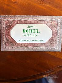 "medaglione centrale" con bordure floreali, che ricalca lo stile dei tappeti persiani Tabriz o