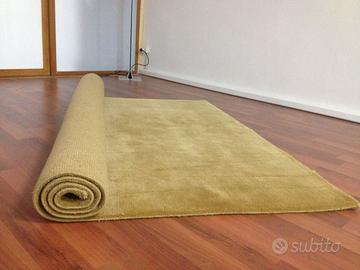 FUORI TUTTO PREZZI ECCEZIONALI Tappeto di lana 100% mod.lord, colore di una calda tonalita' di beige/Camel disegni tinta su tinta' un fondo. Un morbido tappeto in lana dona calore ad ogni casa in modo assolutamente piacevole e naturale. Con queste premesse i tappeti di lana rappresentano dei complementi ideali per la camera da letto e il salotto. Per un tappeto per cucina o dei tappeti outdoor risultano essere invece più adatte fibre sintetiche, come il polipropilene. Le fibre di lana, in virtù della loro struttura flessibile, presentano buone proprietà termoregolatrici. Attraverso la loro struttura vaporosa sono in grado di trattenere l’umidità, rilasciandola poi in un secondo momento. Una ragione in più per l’acquisto di un tappeto di lana è costituita dalla sua abilità di regolare spontaneamente il clima di un ambiente, neutralizzando in aggiunta i cattivi odori. Tutte queste doti rendono la fibra di lana semplicemente perfetta per la fabbricazione di tappeti. Essendo molto elastica, ma al contempo stabile, riesce sempre a ritrovare la propria forma originaria anche dopo essere stata sottoposta a pesanti carichi; nemmeno la presenza di pesanti mobili sulla superficie del tappeto potrebbero alterarne la struttura. La resistenza allo sporco rende i tappeti in lana assolutamente ideali per l’arredamento degli interni.