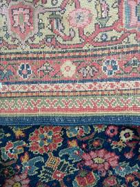 Dal retro si apprezza chiaramente la struttura dell’annodatura a mano, con disegno ben leggibile, lana su ordito in cotone, tipica della produzione orientale di qualità destinata all’esportazione. Il tappeto è solido, compatto e ben conservato, con normali segni del tempo compatibili con l’età, senza strappi o danni strutturali.