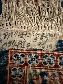 Tappeto orientale autentico, annodato interamente a mano, di provenienza iraniana, come indicato dalla sigla IR presente sull’etichetta originale, con scritte e codici di produzione.