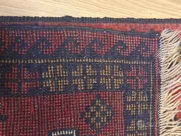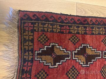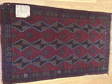 C/3 - Vendo tappeto orientale Belucistan autentico, provenienza Afghanistan, interamente annodato a mano in lana 100%. Dimensioni: 125 × 80 cm. Colori intensi e tipico disegno geometrico beluci, con motivi ripetuti su fondo rosso scuro e dettagli in nero, marrone e ocra. Il bordo presenta una cornice tradizionale con elementi geometrici regolari e ben definiti. Le frange sono leggermente usurate, ma il tappeto è complessivamente ben tenuto e stabile. 📌 Qualità artigianale Il retro mostra chiaramente la struttura annodata a mano: nodi regolari, trama compatta e lavorazione tipica dei Belucistan tradizionali. Autentico e pronto all’uso. #tappeto #orientale #Belucistan #annodatoman #lana100 #arredamento