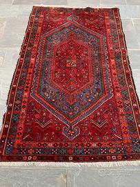 Tappeto di antica manifattura con Con disegno principale a rombi Caldi colori principali diverse sfumature di rosso