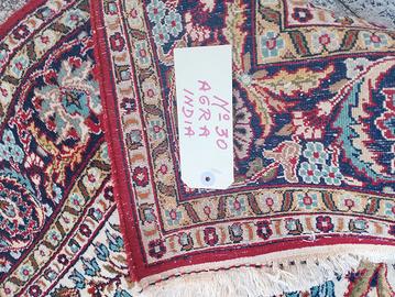 Tappeto orientale Annodatura fine a mano Origine India Regione di Agra Usato ma tenuto bene, piccole tracce di uso sulle testate Di buona Epoca, Circa 1950. Lana su cotone Misure cm. 195 x 120 cm. Buona visione a tutti!