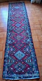 Decorazione casa, salotto, sala, ingresso, tappeto lungo, colorato, rosso, bordeaux, azzurro, avorio, verde, geometrico, tribale, nomade, etnico, iraniano, Qashqai, Kerman, Shiraz, caucasico, Kazakh, Kazak, Shirvan, Kuba.