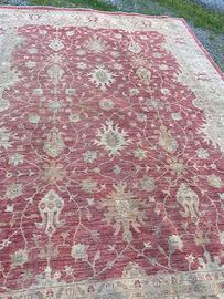 Vendo splendido tappeto orientale annodato a mano, dalle tonalità calde e avvolgenti. Il tappeto presenta una base color rosso mattone con dettagli beige e motivi floreali stilizzati, perfetto per ambienti classici e moderni.