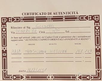 Vendo tappeto orientale annodato a mano di origine Transilvania qualità Herivan con certificato di autenticità