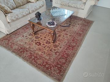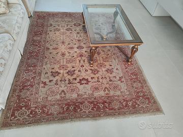 Vendo, per cambio arredo e divano, tappeto Ziegler di manifattura pakistana, annodato interamente a mano. Si tratta di un pezzo ideale per chi cerca l'eleganza del classico ma con colori moderni e facili da abbinare. Tipologia: Ziegler / Chobi (disegno floreale stilizzato). Dimensioni: 238 x 178 cm (ideale per salotto o zona pranzo). Materiali: Vello in lana di alta qualità su trama in cotone. Colori: Fondo beige/crema con decori in terracotta, verde salvia e ocra. I colori sono "stonewashed" (lavati alla pietra), tipici di questo stile, per un effetto vintage molto raffinato. Stato: Il vello è in ottime condizioni, morbido e pulito. Le frange sono corte (come da foto), segno di un tappeto vissuto ma strutturalmente integro e pronto all'uso. Perché sceglierlo: A differenza dei tappeti persiani troppo carichi di rosso, lo stile Ziegler è il più ricercato dagli interior designer perché si adatta perfettamente sia a un arredamento moderno/minimal che a uno classico. Prezzo: € 450 Disponibile per visione e ritiro a carico dell'acquirente