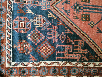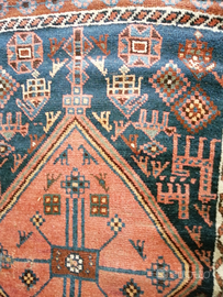 Tappeto passatoia Kazak, caucasico, m. 1x3.20, vecchia produzione, con disegni rari in questo tipo di tappeti generalmente molto geometrici, colori molto gradevoli