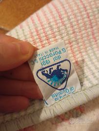 Tappeto/pedana. adatto per la camera di una bambina. Colori rosa, bianco, lilla, verde acqua. Brand Poracchi &Co. Made in Italy. Ottima fattura, morbido. 100% cotone. Dimensioni: tappeto grande 154x88 cm pedana più piccola 124x56cm